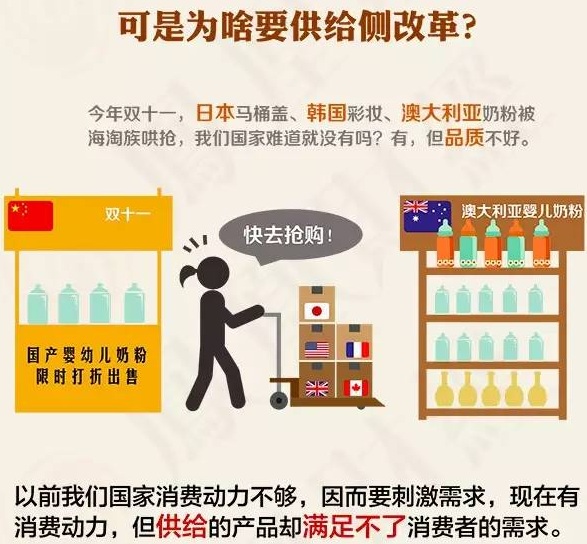 打个比方,现在热门的“海淘”,还有之前中国人们去日本买马桶盖、纸尿裤等新闻,难道是我们中国没有这些产品吗?显然不是,相反,很多这些产品还是“made in China”。为什么人们会不惜重金、不嫌麻烦去国外买这些东西?另外,中国手机厂家那么多,而苹果手机却大受国人追捧。究其原因,是产品质量跟不上,正是我国长期忽视“供给侧”的原因。