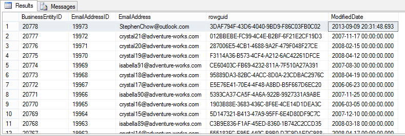 此时查看将可以看到“EmailAddress”表中确实增加了一条记录(“Password”表同样也是如此):