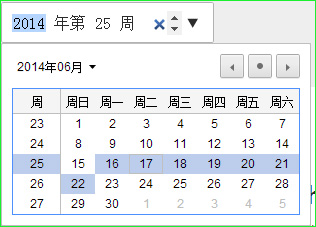 这时,你选择的就不是一个日期了,而是周。请注意周数显示的方式。