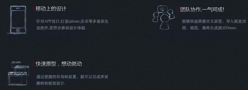 纸+笔设计工具的升级版。非常火的一款原型软件,第一次满足了大家人人都是产品经理的感觉。 很多公司在用:quora、sina、豆瓣、36氪、ifanr…