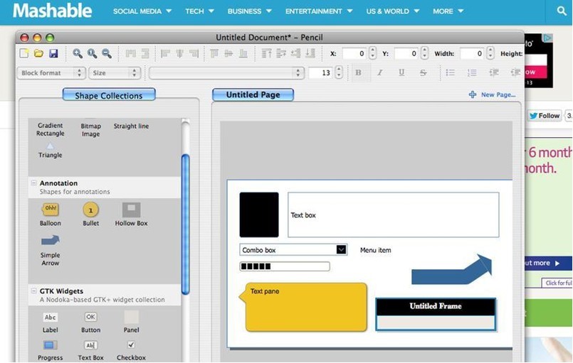 Pencil是一款开源的可以用来制作图表和GUI原型的工具,可以作为一个独立的app,也可以作为Firefox插件。内置模版可以帮你绘制桌面和移动界面中用到的各种各样的用户界面,包括流程图、UI和一般的通用图形。
