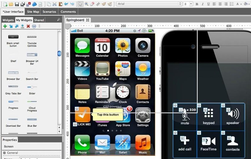 Blueprint的UI非常直观,所有你需要的工具都触手可及。你可以用Blueprint为iPad和iPhone app创建原型,并且它的所有原型组件都是可伸缩的,以适应不同尺寸屏幕的iPhone。