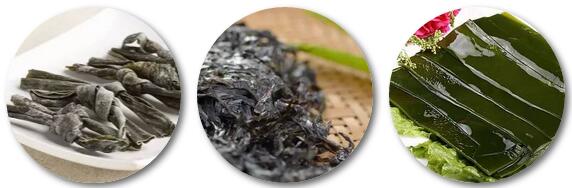 如海带、紫菜、昆布等食品。从中可提取多糖类物质,提高免疫功能以防癌,并且含碘量高,维持甲状腺正常功能。中医认为性味多属咸寒,具有软坚散结,消瘿破积功能。