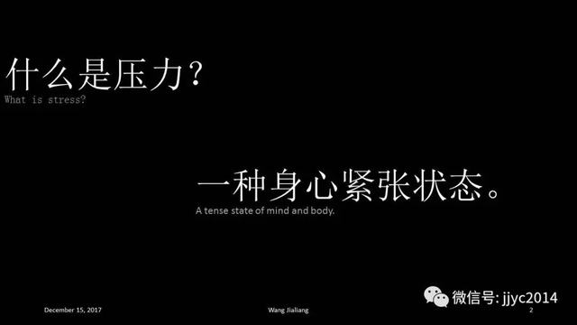 本次分享,主要从经典的提出问题,分析问题,解决问题为主思路。从压力定义、压力表现、压力的影响、压力形成原因以及压力如何应对来进行讲解。