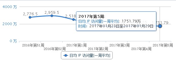 顺便我又看了一下招商银行的访问量,招商银行拥有大量的C端客户。用户的活跃度很高,那它一周的访问量有多少呢?如下图数据: