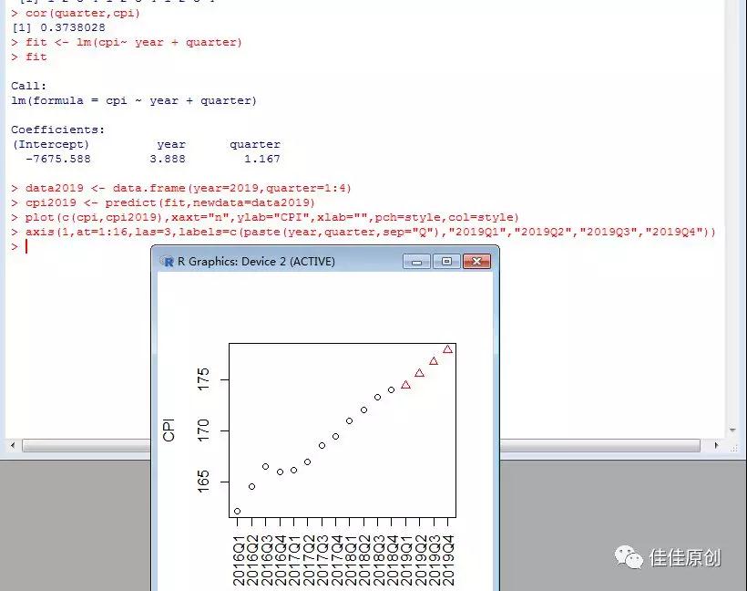 是不是相对比看数据更加直观?但直观并不是我们最终的目的,我们最终的目的是分析趋势,看是否有必要在澳大利亚进行消费领域投资。因此我们需要预测一下澳大利亚今年,也就是2019年的CPI。而预测澳大利亚2019年的CPI,我们就需要对历史数据做一个线性回归模型。既然要预测,预测的结果就是输出,那肯定也需要有输入,而输入就是Year和Quarter。