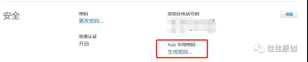 登录【https://appleid.apple.com/】在“安全”类别中,点击 App 专用密码,生成专用密码。